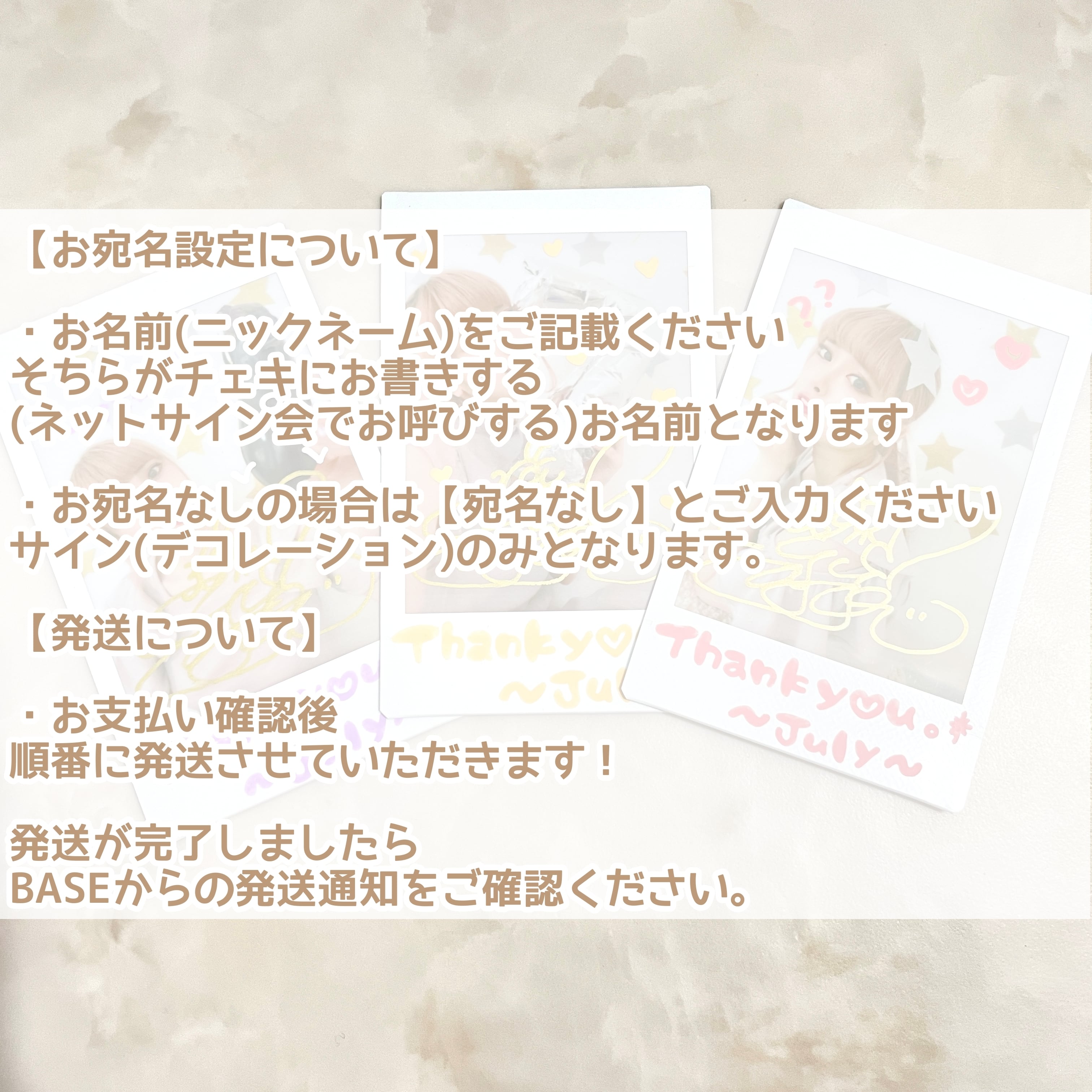 ・サインなしチェキ/サインありチェキ/デコチェキ